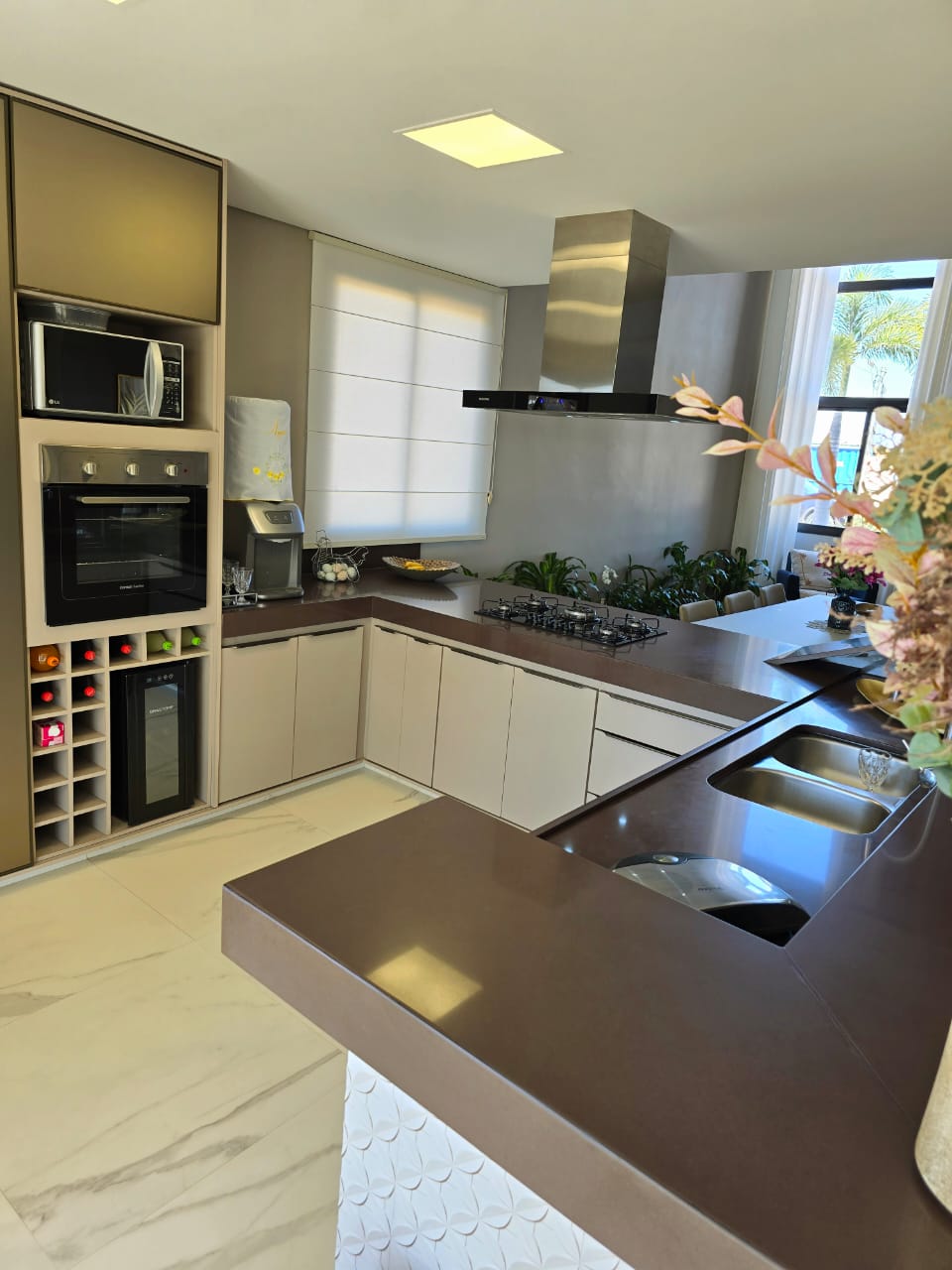 ✔️ Cozinha moderna com bancadas em quartzo e armários planejados.