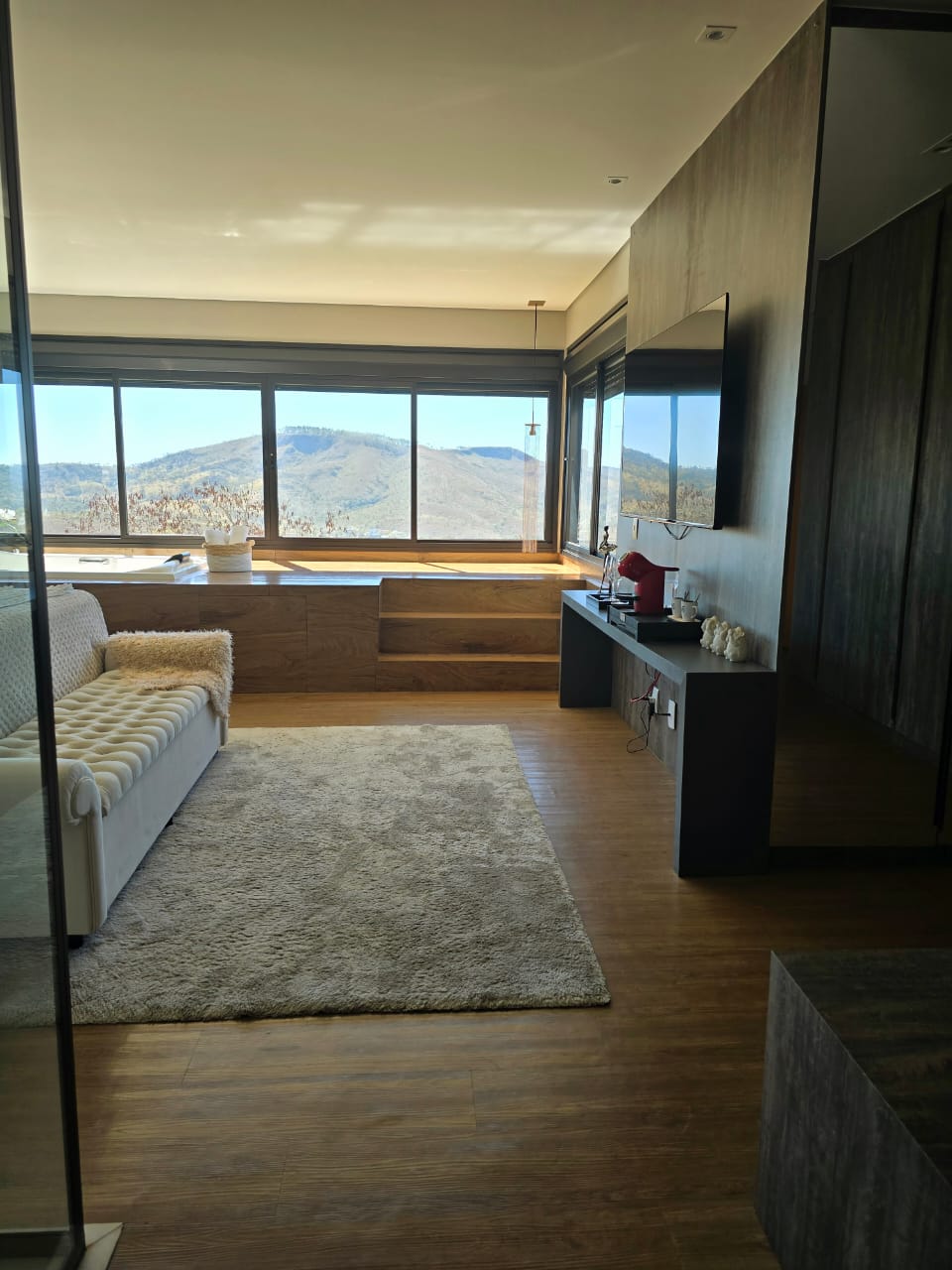 ✔️ Sala com pé direito duplo e muita luz natural.